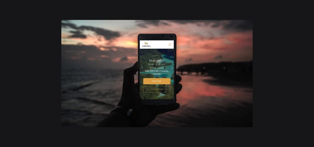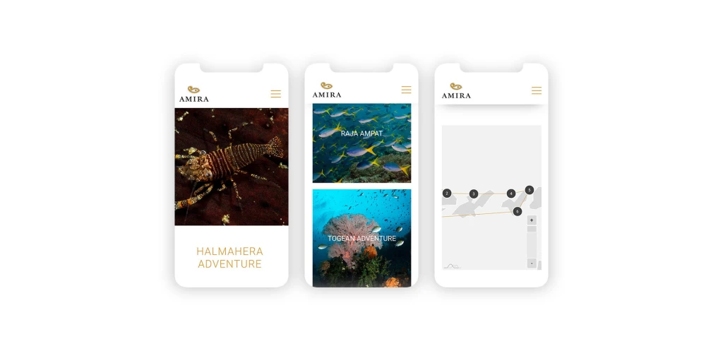 Amira adalah kehidupan di atas kapal yang indah, yang berfokus pada pengalaman jelajah dan menyelam luar biasa yang ditawarkan Indonesia. Website Amira dirancang oleh Lea Lee yang sangat berbakat dan dikembangkan oleh tim kami di Juicebox. Kami menyukai garis yang bersih, UX yang disederhanakan, dan gambar menawan di situs web ini. Sistem penjadwalan yang detail dimasukkan dalam situs web ini untuk memastikan bahwa tamu Amira dapat dengan mudah memesan kapal pesiar mereka dan memeriksa ketersediaan.