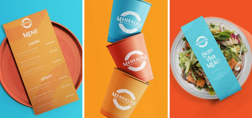 Mandalika Beach Club menunjukkan karakter yang ceria melalui desain logonya yang terinspirasi dari cocktail, matahari terbenam, dan ombak selancar. Beach Club ini juga mendapat manfaat dari Visual Brand Guidelines yang dirancang dengan indah. Energi dan karakter brand tidak hanya harus dikomunikasikan melalui logo, tetapi juga secara konsisten di seluruh media yang digunakan. Nada warna merah dan biru yang kontras namun spesifik dipilih dengan cermat untuk menciptakan aksen yang berani namun menyenangkan.