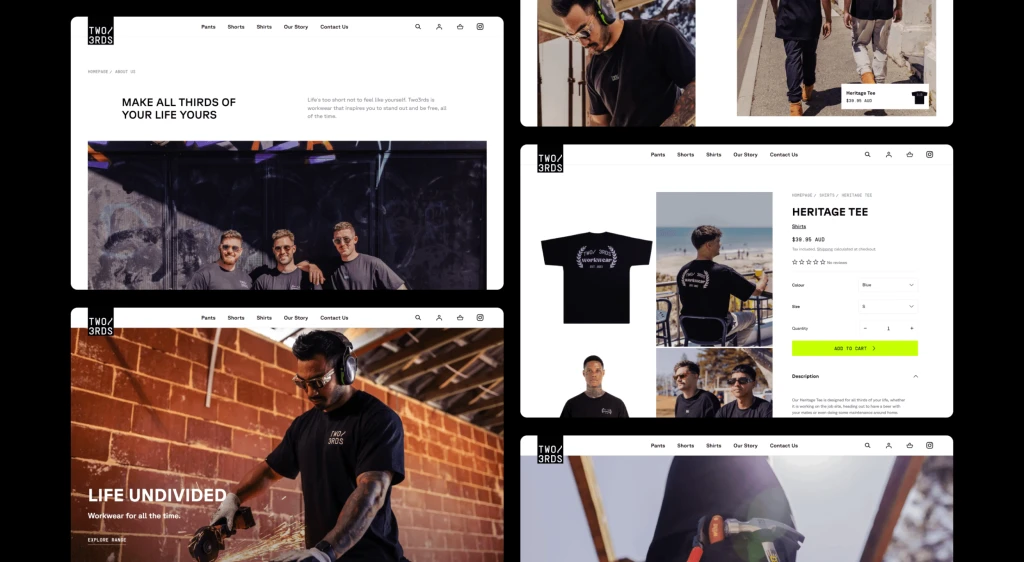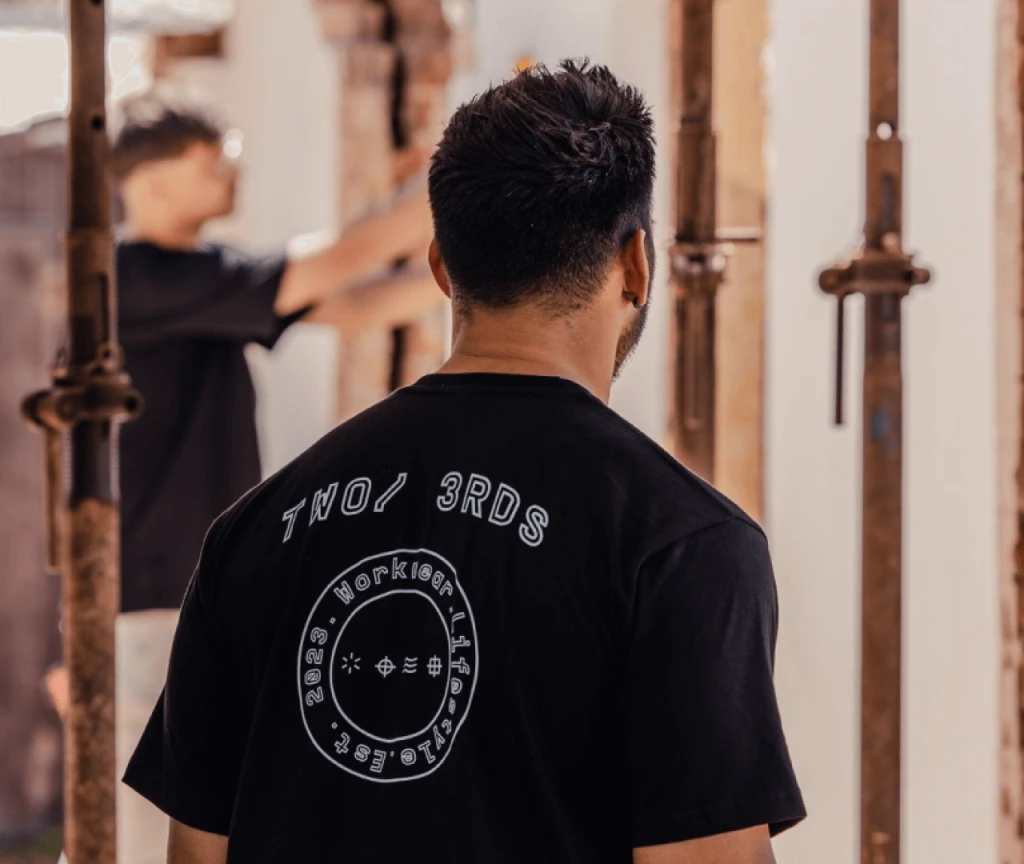 Two3rds lahir untuk memenuhi kebutuhan orang-orang yang ingin bekerja keras, terlihat berbeda, dan merasa bebas, untuk merasa nyaman terlihat hebat saat berpindah dari ⅓ hidup ke yang berikutnya, mulai dari lokasi kerja berdebu hingga minum sore di hari Jumat yang hangat.