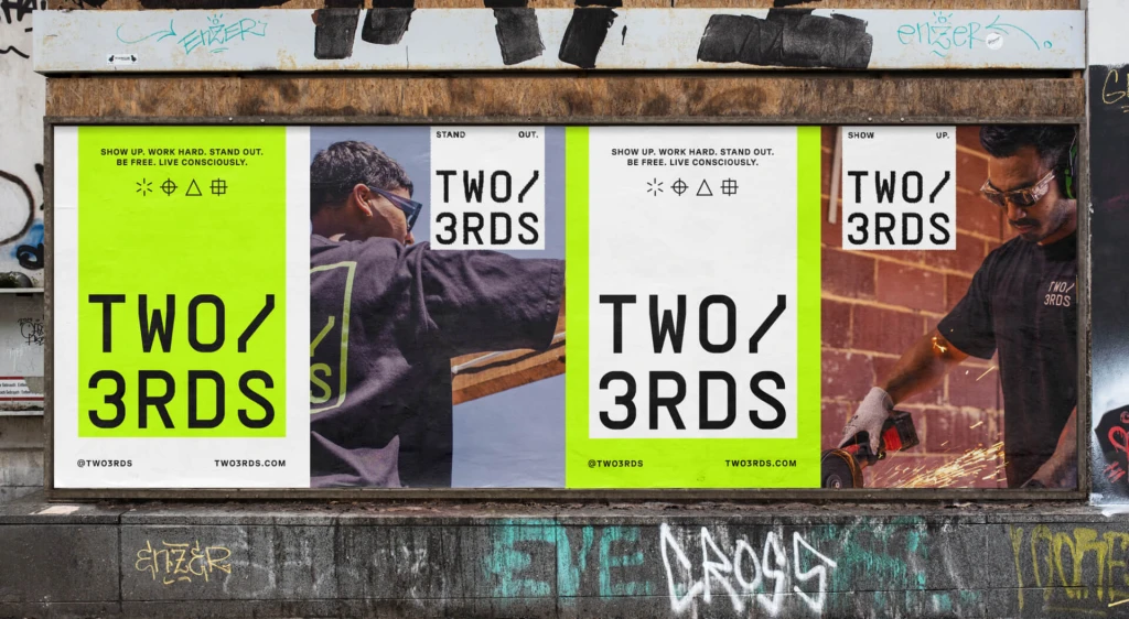 Tantangan yang dihadapi adalah menyampaikan esensi dari Two3rds dalam industri pakaian kontemporer yang terus berkembang. Kami berupaya untuk menciptakan identitas yang terlihat jelas, terkini, dan berkelas yang mencerminkan tujuan dan ambisi merek.
