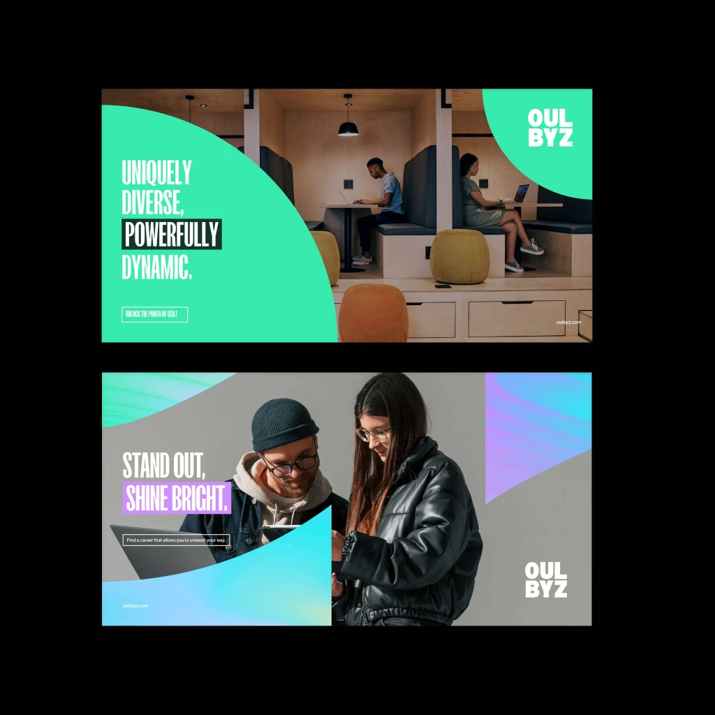 Notably, the logomark subtly incorporates the shape of the number 1 and letter Z, conveying a powerful message: Gen Z is not only capable but also ready to take the lead in today’s workplace. This design choice reflects Oulbyz’s commitment to empowering young talent to step into leadership roles with confidence and ambition.