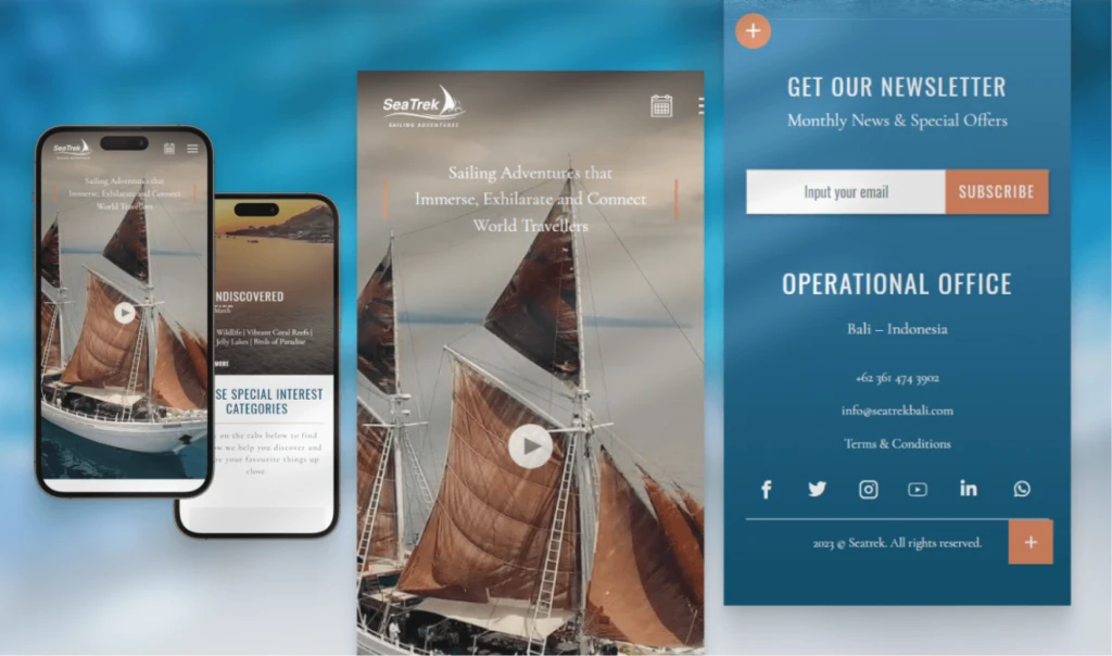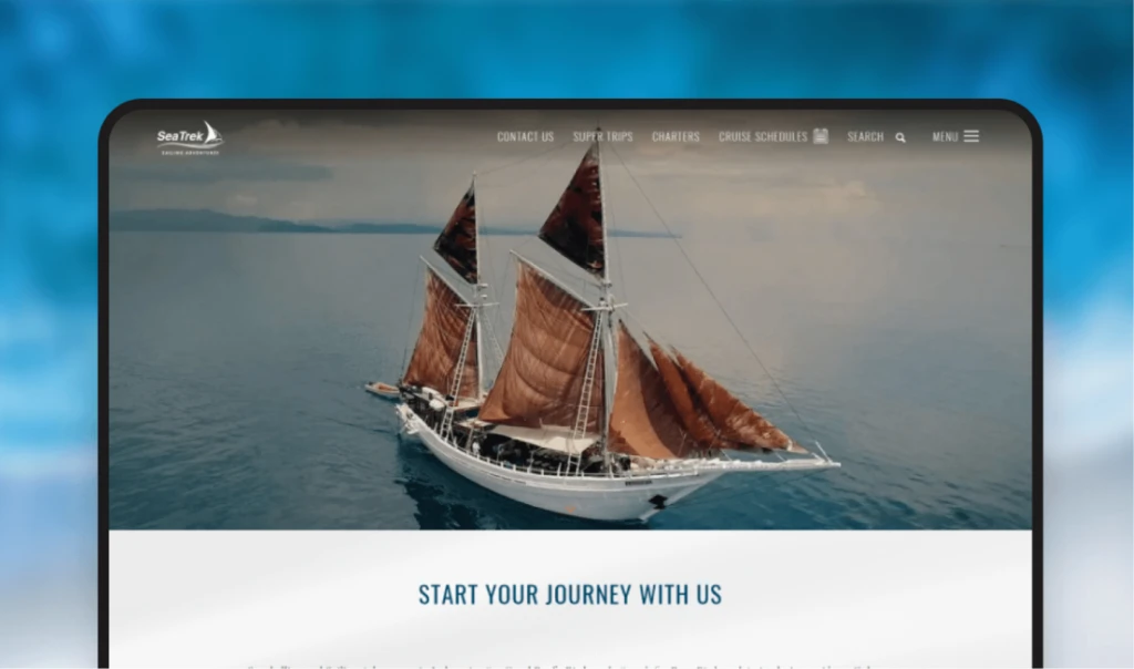 Our collaboration extended to redesigning Sea Trek’s website, with the goal of creating an engaging and visually stunning platform that mirrors the beauty and excitement of their sailing adventures. We incorporated dynamic and interactive visual elements that not only enhanced the site’s aesthetic appeal but also improved the user experience.